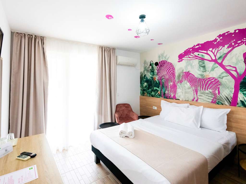 Camerele hotelului ibis Styles Venus**** reprezintă un mix perfect între stil și funcționalitate, având un design modern și plin de culoare, cu nuanțe vibrante de roz și verde. Patul din colecția Sweet Bed® ibis este piesa centrală, oferind un confort unic care îi face pe oaspeți să revină mereu. Confortul nu se oprește aici – fiecare cameră este dotată cu aer condiționat, Wi-Fi gratuit și un televizor LCD generos, pentru o experiență de neuitat.